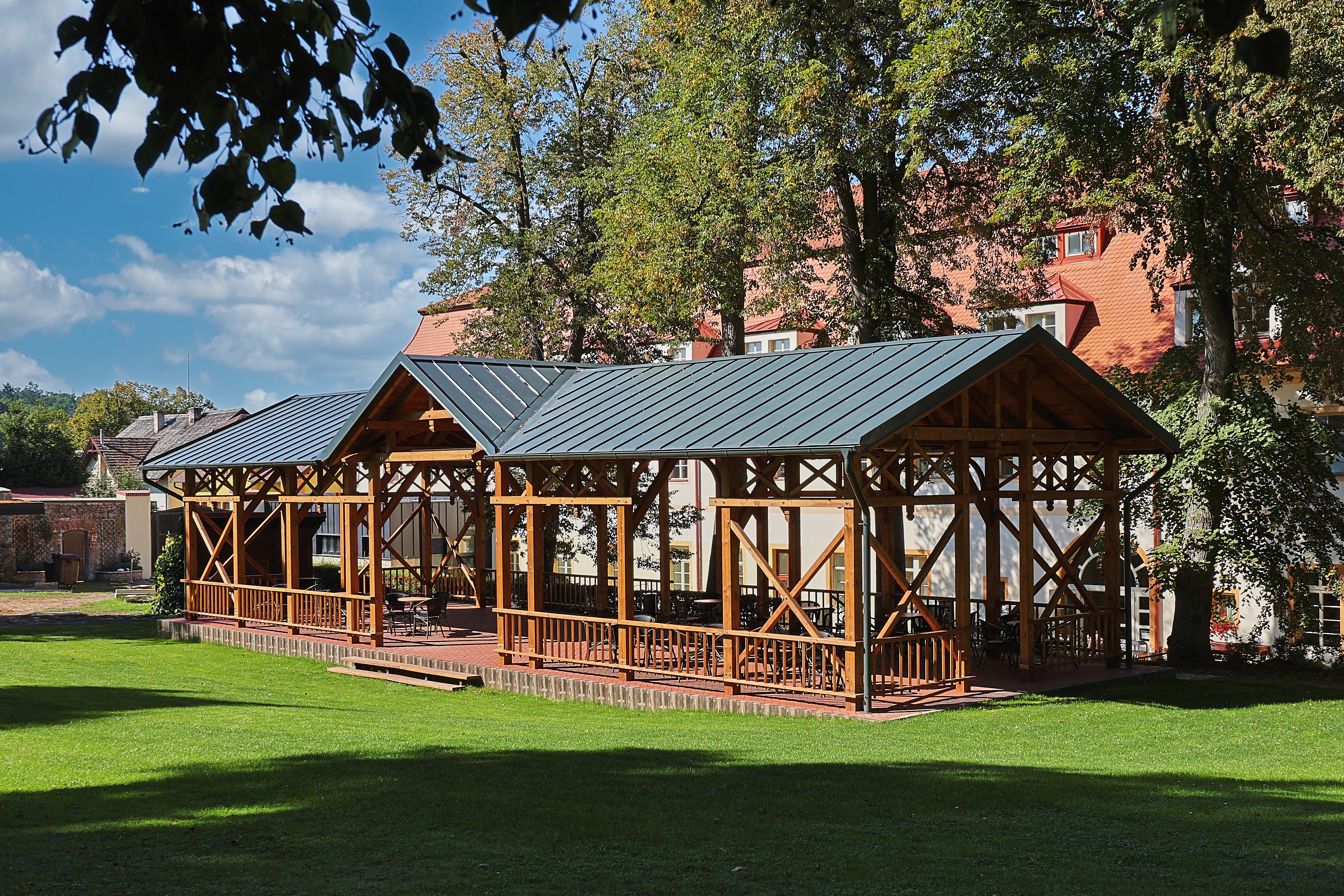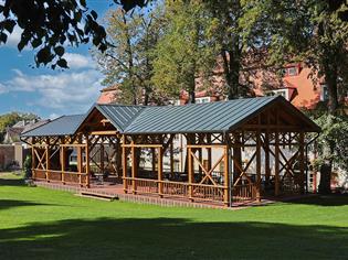 Součástí hotelu je přilehlá zahrada s letní scénou. Pečlivě udržovaná zahrada je v létě hojně využívána k hostinám s grilováním pod širým nebem a svatebním obřadům.